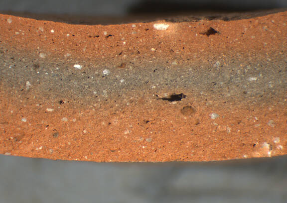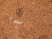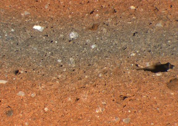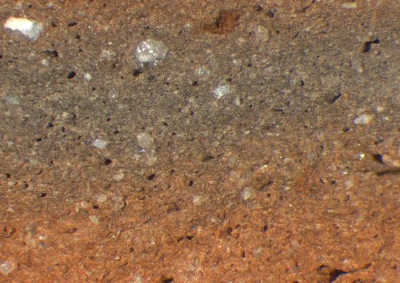 reddish yellow, fine; many fine to mid-sized white, red and dark inclusions |
