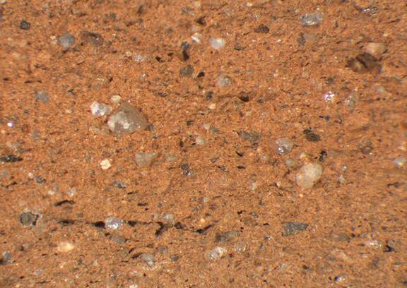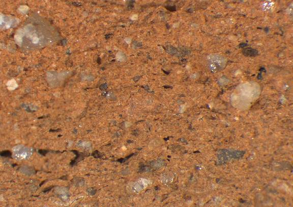 reddish yellow, granular; some fine white and dark inclusions, |